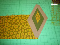 Honestly, this was a challenge for me, so I hope that my explanation is clear enough! I started out by laying out my diamond on my gridded cutting mat, centering it within the indicators for the 12 1/2" dimensions (my desired finished product).
