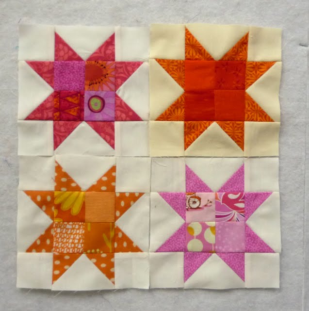I liked the option of making them a little more scrappy with the 4-patch in the center - because we all know that scrappy is my style. It looks like Nico will have a bright, fun assortment of stars to play with!